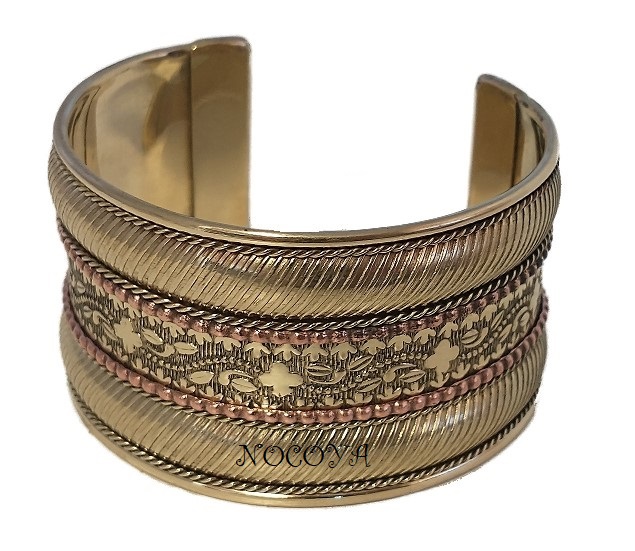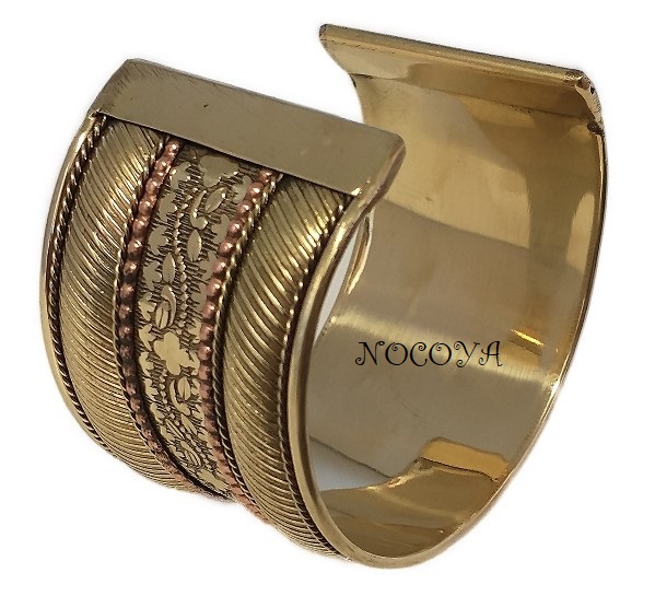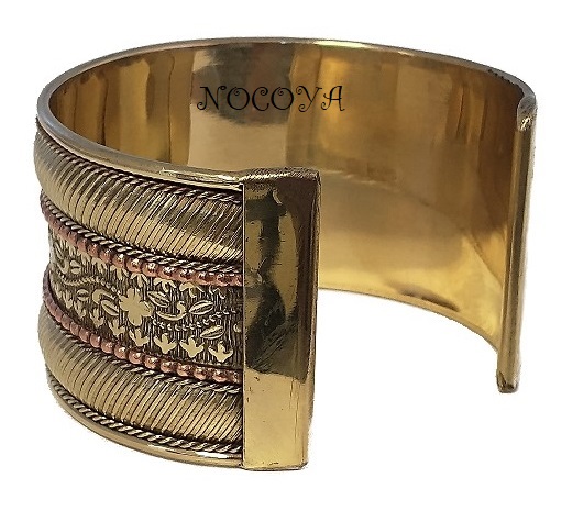Erittäin leveä rannekoru messinkistä. Käsintehty monimutkaisilla tekstuureilla ja upeilla kuvioilla